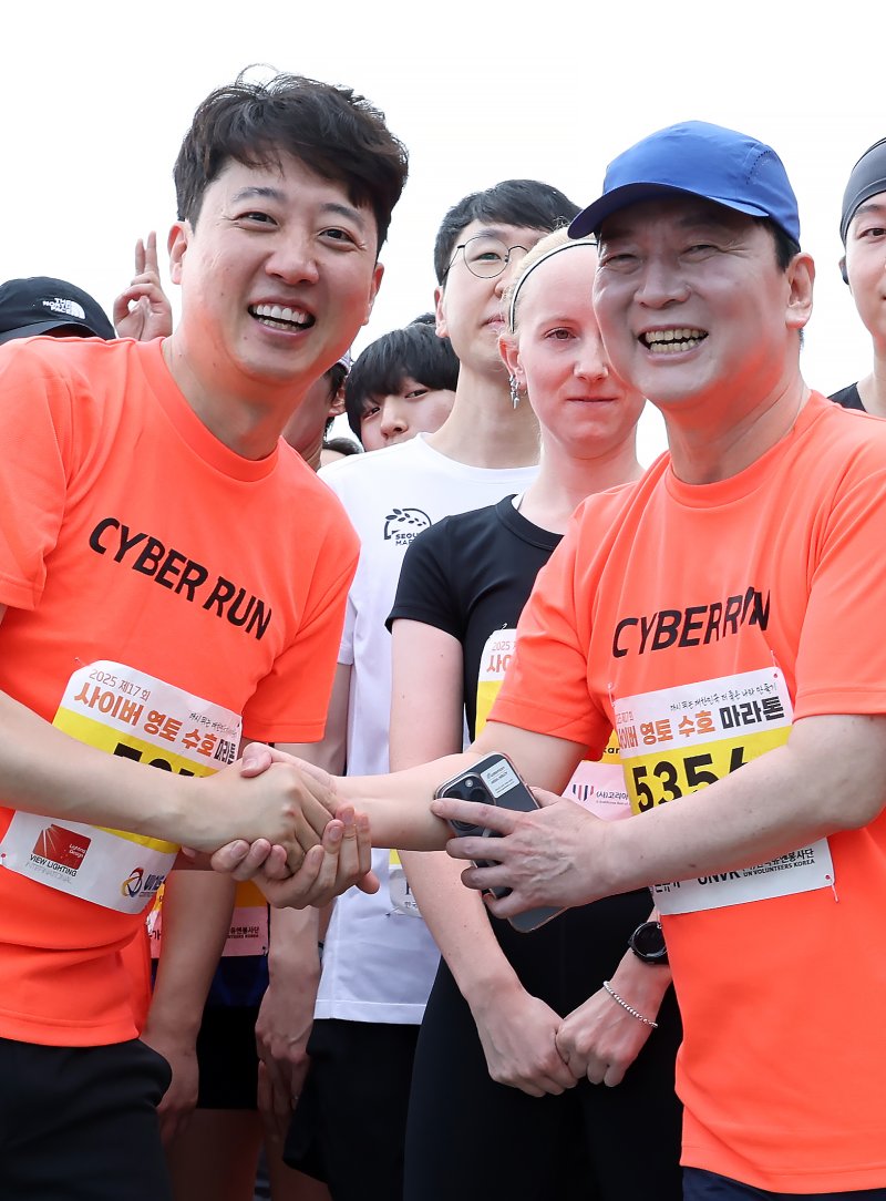 7일 정치권에 따르면 이 대표와 안 의원은 이날 오전 서울 여의도 한강공원 물빛무대에서 열린 헌정회 후원 행사 '제17회 사이버 영토 수호 마라톤 대회'에 나란히 참석했다. 이들은 5㎞ 코스 출발 전 서로 악수하며 인사했다. 다만 사전에 서로의 참석 여부는 알지는 못했던 것으로 전해졌다.