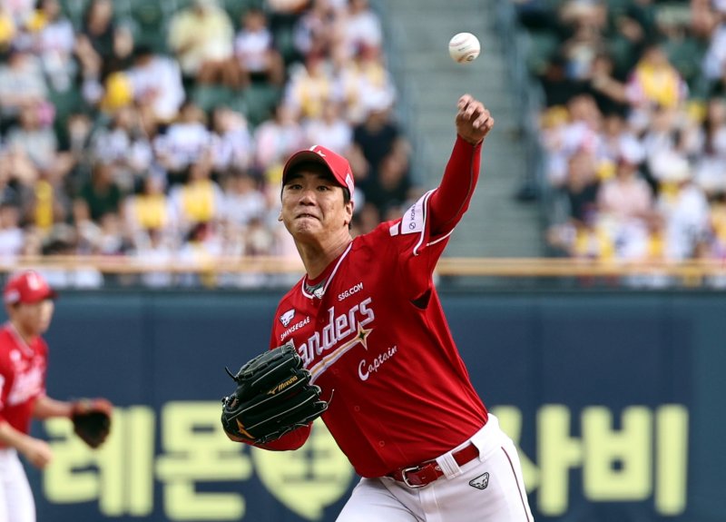 SSG 선발투수 김광현은 5이닝 동안 7피안타 무사사구 3탈삼진 3실점을 기록해 시즌 8승(9패)째를 거뒀다.