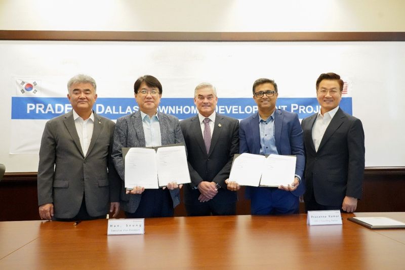 8일 한강에셋운용에 따르면 이번 체결식은 프로스퍼 시청에서 열렸다. 정원주 대우건설 회장, 한승 대우건설 해외사업단장, 데이비드 브리스톨 프라스퍼 시장, 프라사나 쿠마르 Orion RE Capital CEO, 전유훈 한강에셋자산운용 총괄대표 등이 참석했다.
