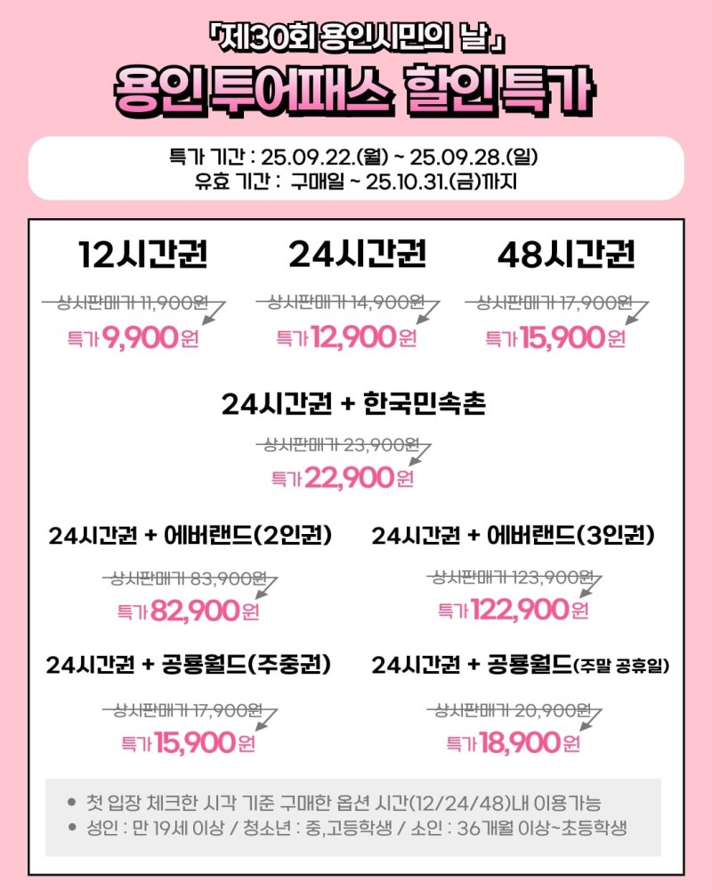 [용인=뉴시스] 이준구 기자 = 경기 용인시는 제30회 용인시민의 날을 기념해 9월 한국민속촌과 용인투어패스를 할인 제공하는 특별 행사를 진행한다고 8일 밝혔다.