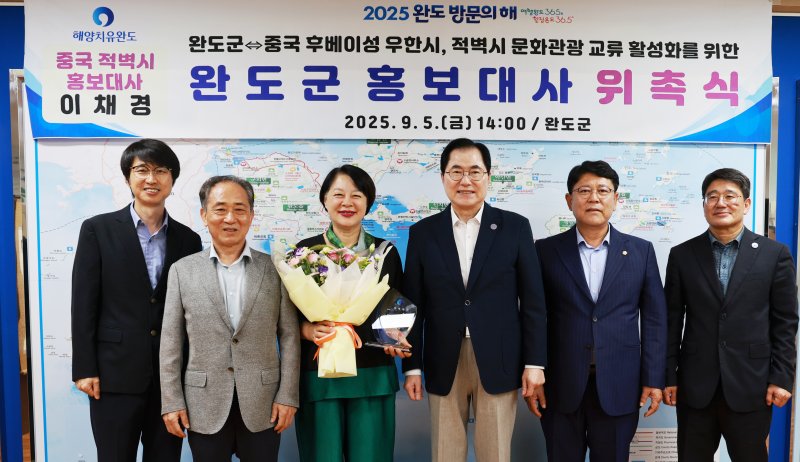 (완도=뉴스1) 김태성 기자 = 전남 완도군은 중국과 문화 관광 교류 활성화를 위해 이채경 중국 후베이성 적벽시 홍보 대사를 군 홍보 대사로 위촉했다고 8일 밝혔다.