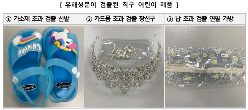 특히 어린이 신발에서 기준치를 최대 405배 초과하는 프탈레이트계 가소제가 나왔다. 또 어린이 장신구에서 기준치를 최대 5680배 초과하는 카드뮴이, 어린이 연필 가방에서 기준치를 최대 15배 초과하는 납이 각각 검출됐다.