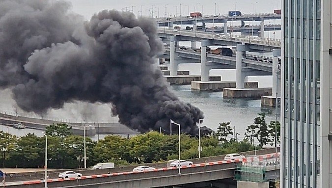 해운대구는 "우동항 인근 연기 발생으로 인근 주민들은 창문 닫기 등 안전에 유의해 달라"고 안전안내문자를 보냈다.