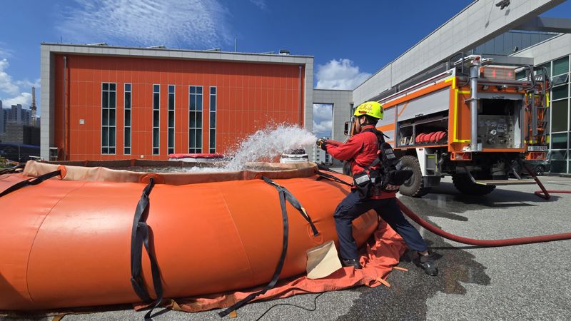 이번에 지원된 이동식저수조는 산불발생 때 담수지와 거리가 멀어 물 보급이 제한된 지역에서 산불진화헬기의 담수용으로 활용하는 장비다.