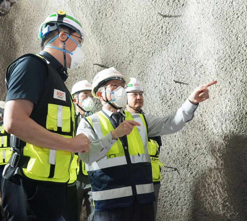 10일 HDC현대산업개발은 정경구 대표이사와 경영진이 현장을 방문해 철도보호지구 내 차량기지 진입선로 시공 구간의 터널 내부 작업 여건과 흙막이 가시설 상태, 수직구 구간 등을 점검했다고 밝혔다.