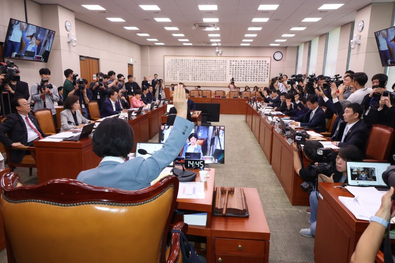 반면 송석준 국민의힘 의원은 "간사 선임을 이렇게 기피하는 이유가 무엇인지 위원장님이 납득이 가게 설명해달라"며 "우리 당에서 안건조정위 신청을 했는데 일방적으로 했다고 하고 우린 참석 안 했다고 사실과 다른 말씀을 하시나"라고 주장했다.