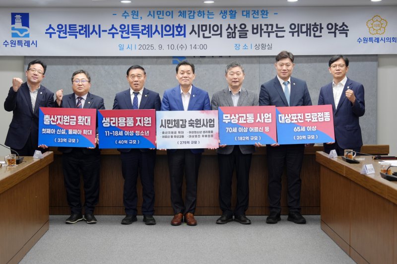 수원시 여야가 뜻을 모아 추진하는 시민체감 숙원사업은 △출산지원금 확대 △청소년 생리용품 지원 △무상교통 △대상포진 무료접종 등 시민들에게 실질적으로 도움이 되는 사업들로 구성됐다.