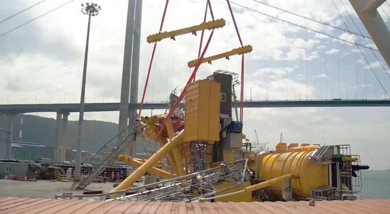 사고는 무게 180t 규모의 곡물 하역기를 바지선에 싣는 작업 중 발생했다.