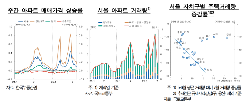 다만 향후 리스크는 여전하다는 평가다. 서울 지역의 주택가격 상승세가 여전히 높고 15억초과 아파트에서는 7월 이후에도 상승 거래 및 신고가 거래가 이어지는 등 추가 가격상승 기대와 잠재 구입수요가 견조하다는 지적이다.