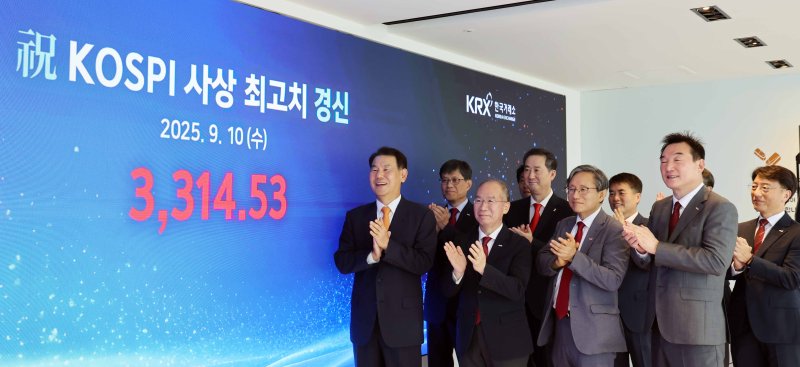 11일 한국거래소에 따르면 코스피(유가증권시장)는 전 거래일보다 1.67% 오른 3314.53에 마감했다. 이는 종가 기준으로 2021년 7월 6일의 직전 최고치(3305.21)를 약 4년 2개월 만에 넘어선 것이다.