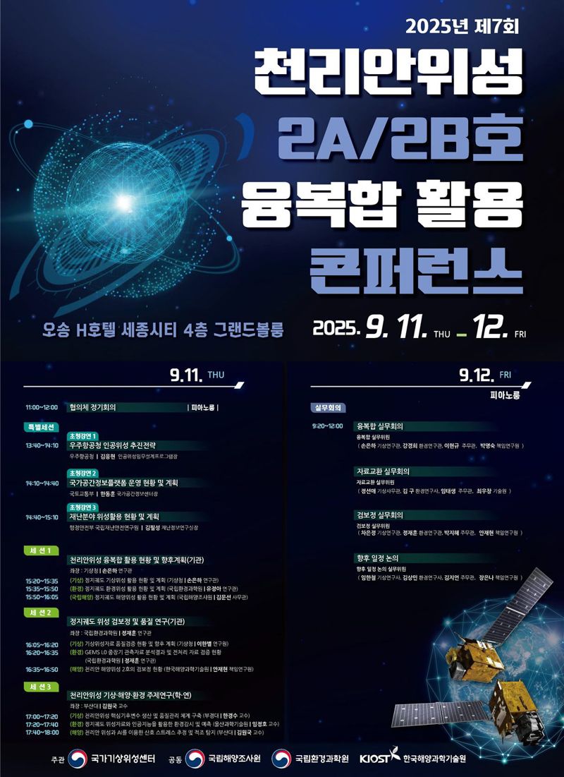 이어 각 참여기관 소속 연구진들이 천리안위성 2호의 융복합 활용 현황과 계획, 검보정과 품질관리 연구, 기상·해양·환경 학연 연구 전문가 발표에 나선다.