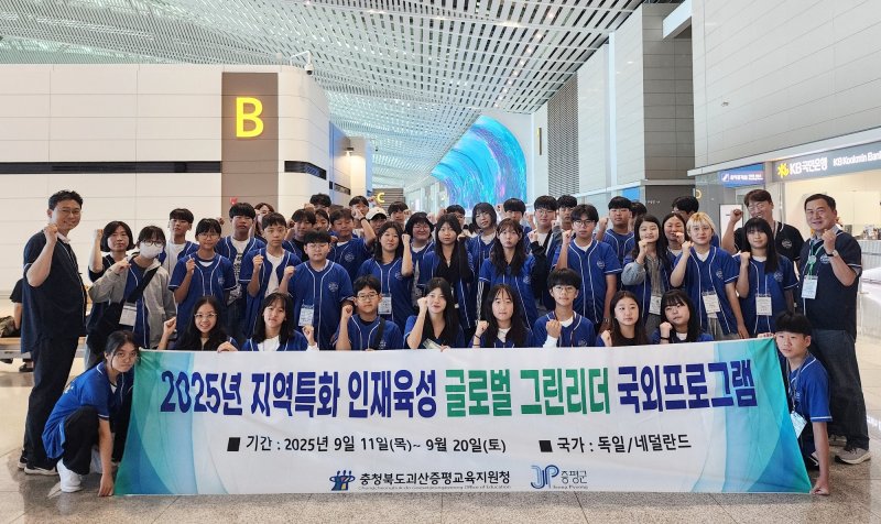 (증평=뉴스1) 이성기 기자 = 충북 괴산증평교육지원청과 증평군청이 함께 추진하는 2025 지역 특화 인재육성 글로벌 그린리더 프로젝트에 참여한 학생 등 45명이 11일 인천국제공항을 통해 네덜란드·독일로 출국했다.