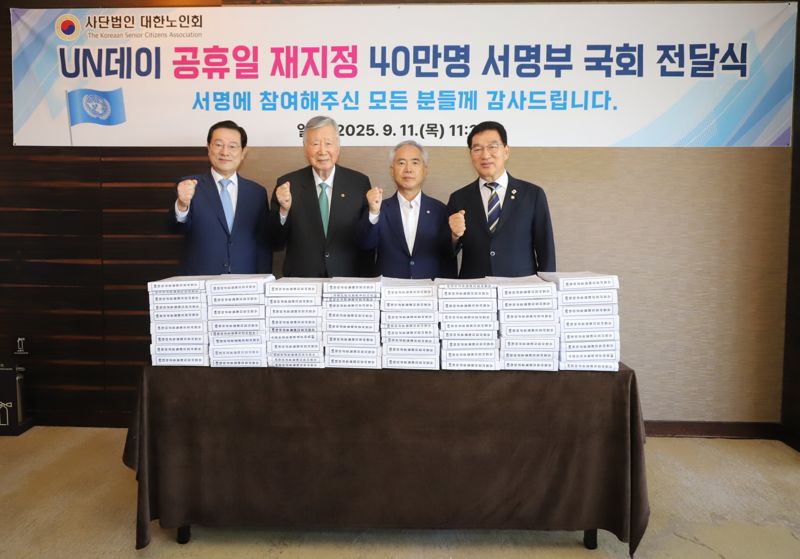 11일 대한노인회는 이중근 회장이 신정훈 행정안전위원회 위원장, 양부남 더불어민주당 의원을 만나 40만명이 동참한 유엔데이 공휴일 재지정 서명부를 전달했다고 밝혔다.