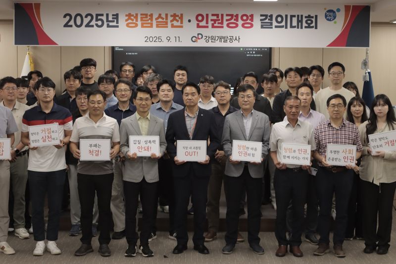 【파이낸셜뉴스 춘천=김기섭 기자】강원개발공사가 임직원의 윤리 의식과 상호 존중 문화를 강화하기 위해 제1회 청렴·인권의 날 행사를 개최했다.