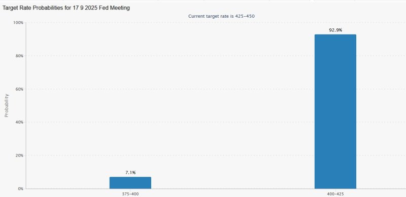 이에 비해 0.25%포인트의 인하 확률은 92.9%까지 치솟았다. 전일에는 88% 수준이었다.