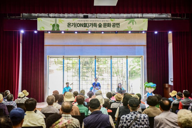 【파이낸셜뉴스 춘천=김기섭 기자】강원문화재단은 11일 국립춘천숲체원 어울림관에서 자연과 음악이 어우러진 ‘온기(ON氣) 가득 숲속음악회’를 성황리에 개최했다.