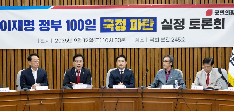 송언석 국민의힘 원내대표는 이날 오전 국회에서 열린 '이재명 정부 100일 국정 파탄 실정 토론회'에서 더불어민주당을 향해 "가급적 다음 주 화요일 이전에 여야 민생경제협의체 첫 회의를 다시 한번 제안한다"고 말했다.