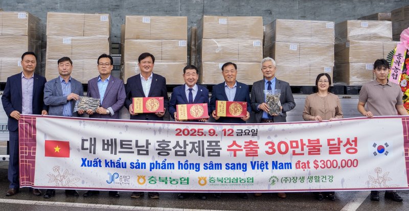 (증평=뉴스1) 이성기 기자 = 충북 증평군의 대표 특산물인 인삼 제품이 베트남 수출길에 올랐다.