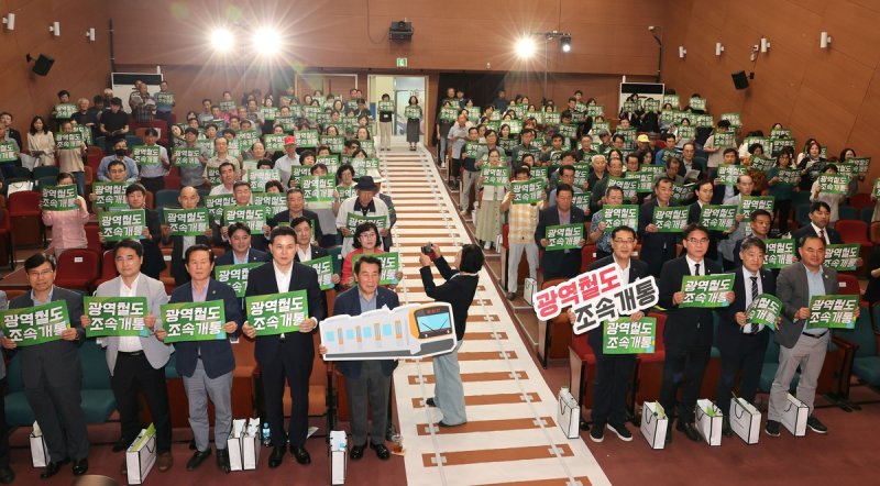 (양산=연합뉴스) 김동민 기자 = 경남 양산시는 12일 웅상문화체육센터에서 '부산∼양산∼울산 광역철도 건설사업'의 조속한 추진을 위한 시민 결의대회를 열었다.