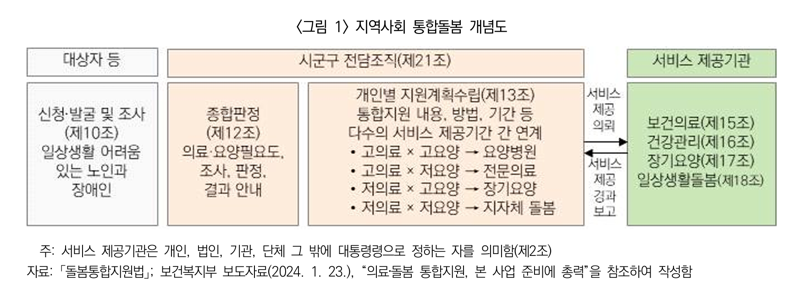 돌봄통합지원법은 장애인 지원·노인맞춤돌봄 등 복지서비스가 비효율적으로 운영되고, 고령층의 돌봄 수요가 증가하며 제도적 보완이 필요하다는 요구에 따라 제정된 법안이다.