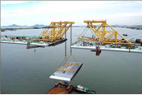 제3연륙교 사장교 마지막 상판 최종 연결 완료