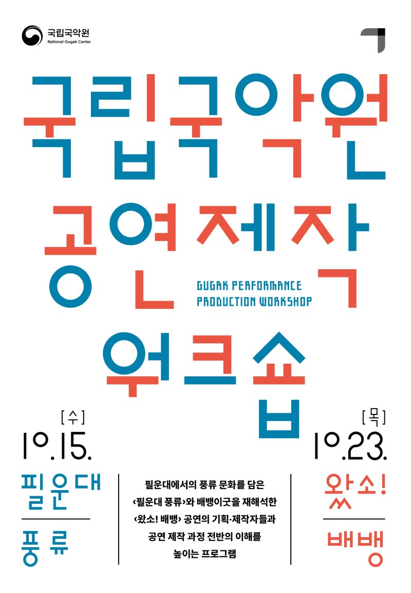워크숍은 내달 15일과 23일 오후 1시 국립국악원 대회의실과 예인마루 세미나실에서 진행되며 국립국악원의 대표 창작 공연인 '필운대풍류'와 '왔소! 배뱅'의 제작 과정을 집중적으로 다룬다.