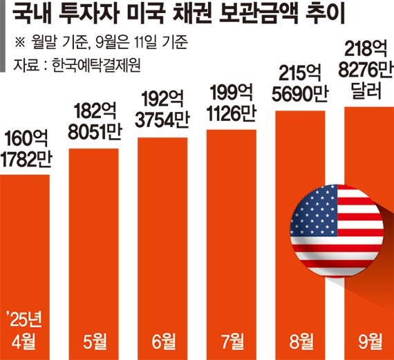 15일 한국예탁결제원에 따르면 지난 11일 기준 국내 투자자의 미국 채권 보관금액은 218억8276만달러(약 30조3732억원)로 집계됐다. 보관금액은 국내 투자자가 예탁원을 통해 거래·보유하고 있는 미국 채권의 총잔액으로, 지난 2011년 집계를 시작한 이후 연간 기준 최대 규모를 경신했다.