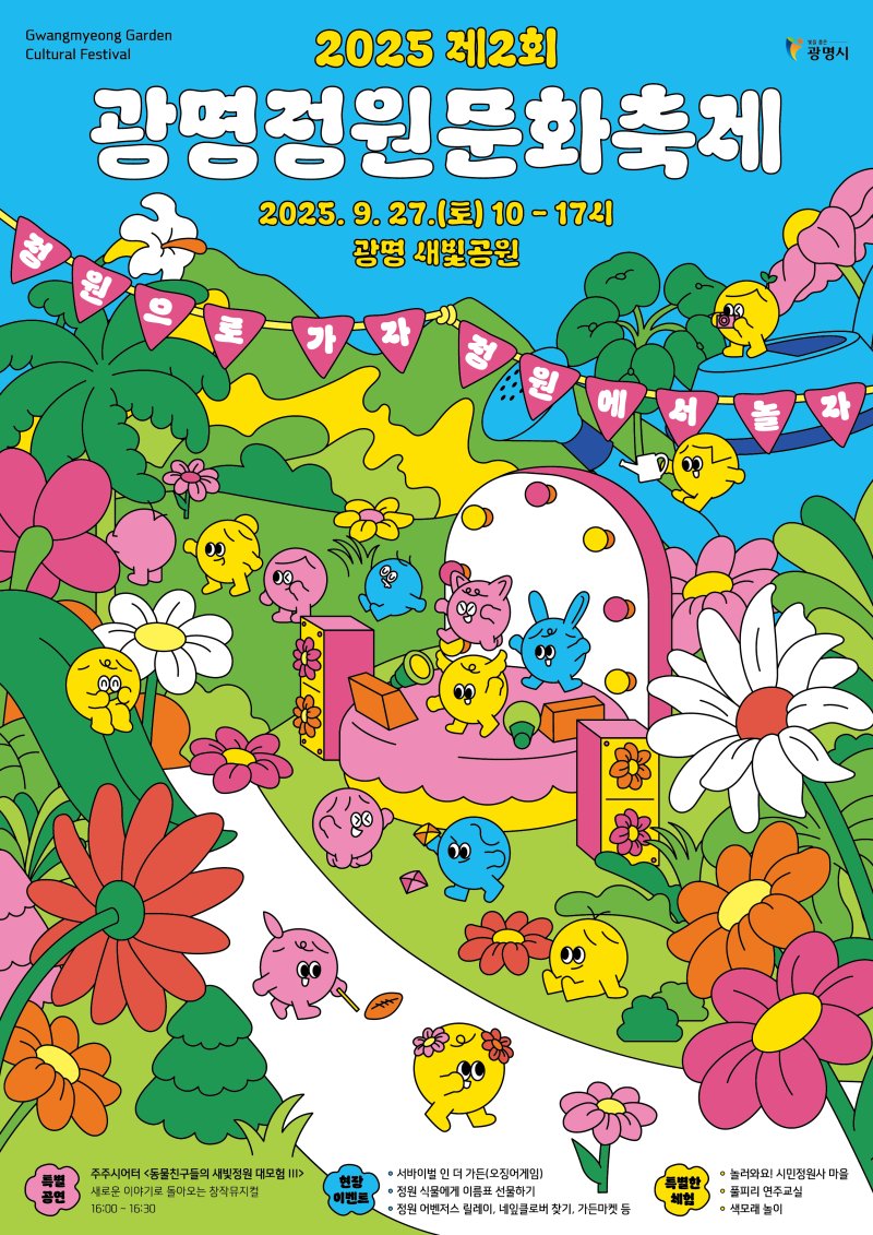 무대에서는 정원 상식을 겨루는 '정원퀴즈쇼'와 창작뮤지컬 '동물친구들의 새빛정원 대모험 3탄' 등이 열리고, 가든마켓에서는 원예, 정원용품과 먹거리까지 만날 수 있다.