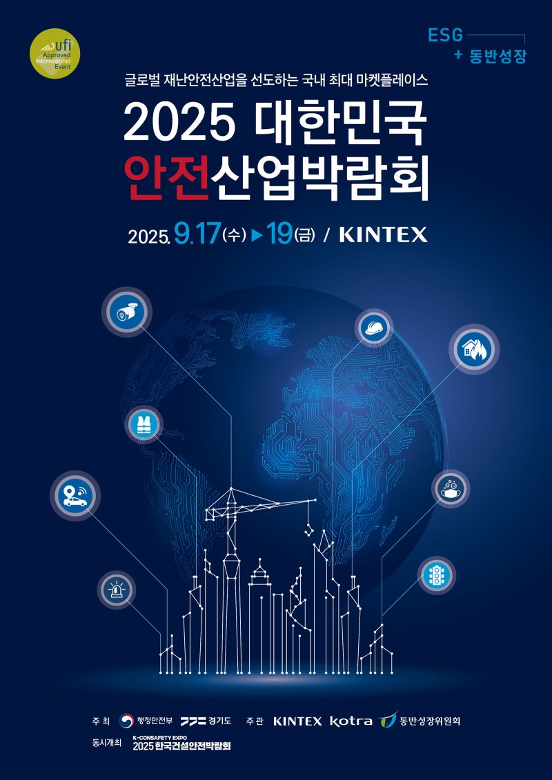 행정안전부는 경기도와 함께 17일부터 19일까지 3일간 일산 킨텍스에서 ‘2025 대한민국 안전산업박람회(K-SAFETY EXPO 2025)’를 개최한다고 16일 밝혔다.