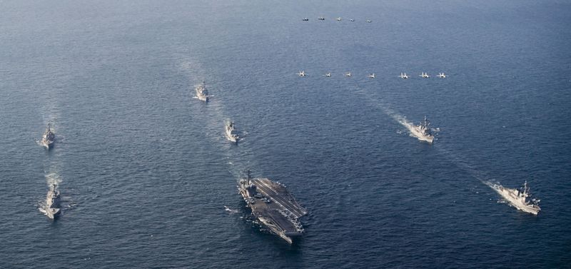 중동에 2개의 미 항모전단이 배치 상황, 일정 고려 관측도
