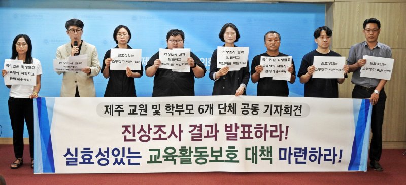 제주도 내 6개 교육 및 학부모 단체는 16일 제주도의회 도민카페에서 기자회견을 열고 "민원 대응 시스템 작동 실패에 대한 진상조사 결과를 발표하고 책임자를 처벌하라"고 밝혔다.