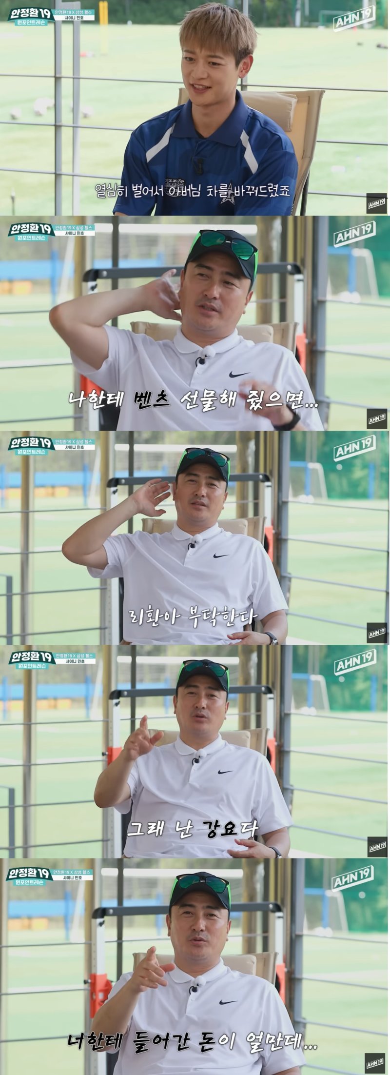 민호가 "열심히 돈 벌어서 아버지 차를 바꿔 드렸다"고 하자 안정환은 "우리 아들도 커서 나한테 벤X 선물해줬으면 좋겠다"고 솔직하게 말했다.
