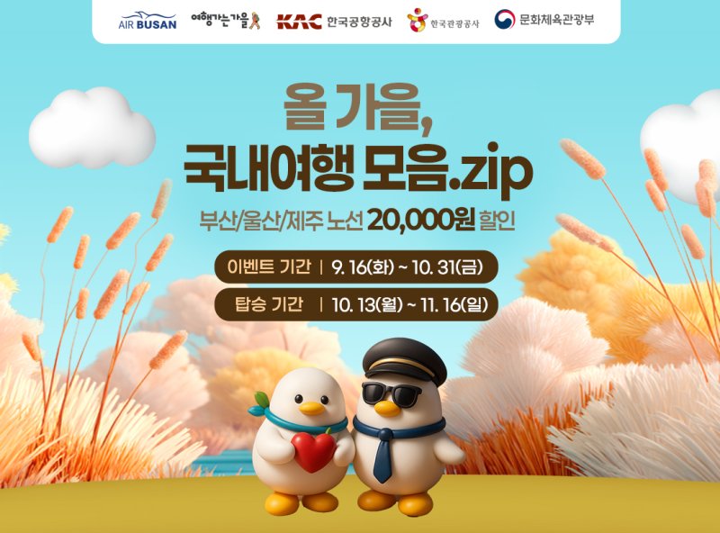 탑승 기간은 10월13일부터 11월16일까지이며 쿠폰 발급과 사용에 대한 자세한 내용은 에어부산 홈페이지 및 모바일 웹·앱 내 이벤트 상세 페이지를 통해 확인할 수 있다.