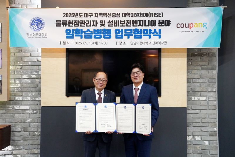 영남이공대는가 전국 대학 최초로 쿠팡풀필먼트서비스(유)(이하 CFS)와 지난 16일 영남이공대 천마역사관에서 최대 규모의 AI 기술 관련 지역 인재 양성 프로젝트를 위한 협약을 체결했다고 17일 밝혔다.