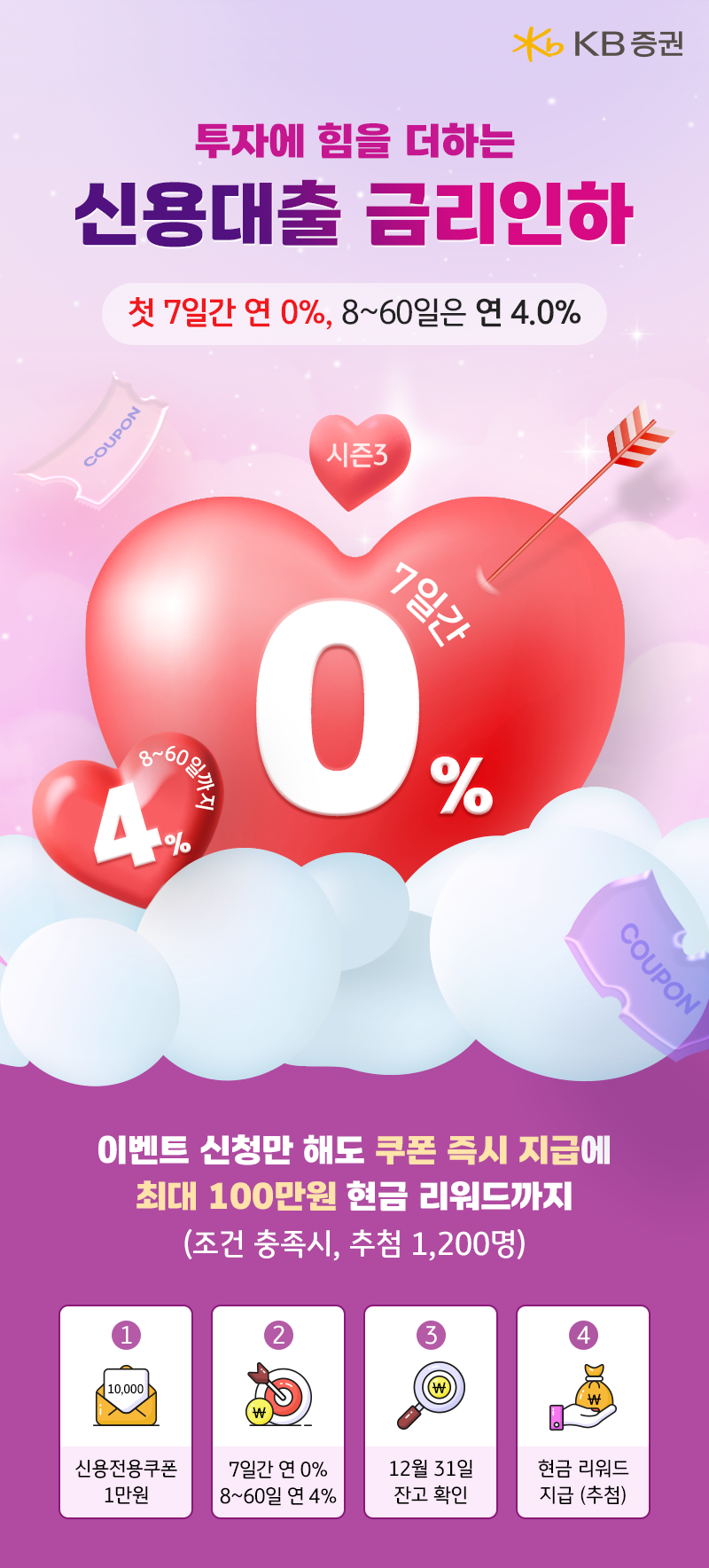 손희재 KB증권 디지털그룹장은 “단기 금리 0% 혜택과 현금리워드, 신용전용쿠폰 등 다양한 혜택을 통해 고객의 투자 활동을 적극 지원하고자 했다”며, “신규 및 휴면 고객뿐만 아니라 기존 신용거래 고객을 위한 감사 이벤트도 함께 마련해 앞으로도 고객 신뢰와 만족도를 높여 나가겠다”고 말했다.