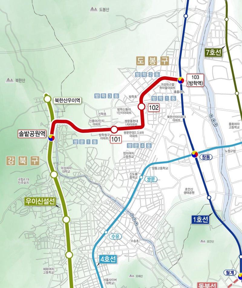솔밭공원역~방학역(1호선) 잇는 3개 정거장 신설