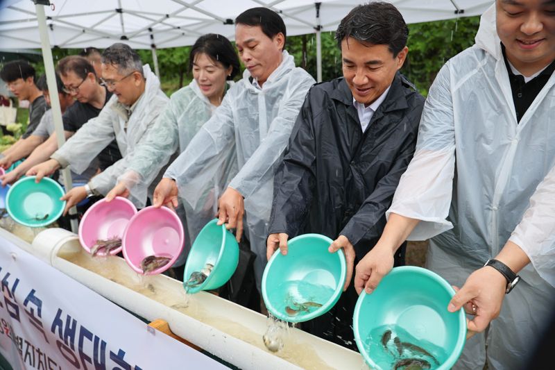 이번 행사에서는 환경 적응력과 수질 정화력이 뛰어난 잉어 2만 마리와 다슬기 20만 마리가 방류됐다.