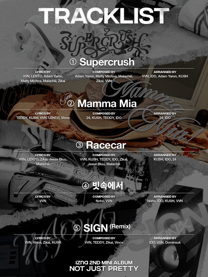 트랙리스트에 따르면 이번 앨범은 타이틀곡 '맘마미아'(Mamma Mia)를 비롯해 '슈퍼크러시'(Supercrush), '레이스카'(Racecar), '빗속에서', '사인(SIGN) (Remix)'까지 총 5곡이 수록된다.