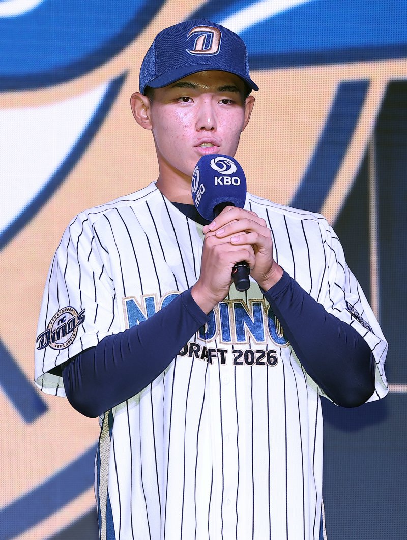 신재인은 17일 서울 송파구 롯데호텔 월드 크리스탈볼룸에서 열린 '2026 KBO 신인드래프트'에서 전체 1순위 박준현(키움 히어로즈)에 이어 2순위로 NC의 선택을 받았다.