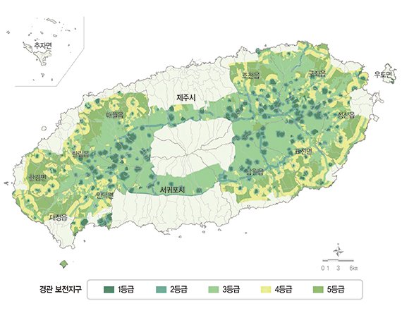 특히 오름 경계부에서는 '오름 비고의 10분의 3을 초과하는 건축물'을 제한하고, 해안선 일주도로 지역은 관리대상으로 지정해 해안경관축의 무분별한 훼손을 막았다.