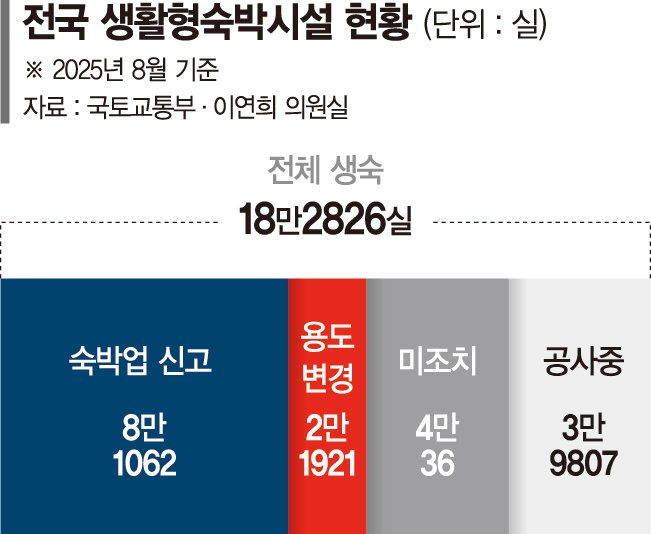 앞서 정부는 올 9월까지 숙박업 신고 또는 오피스텔 등으로 용도변경 신청을 해야만 2027년 말까지 이행강제금 부과 절차 개시를 유예한다고 발표한 바 있다.