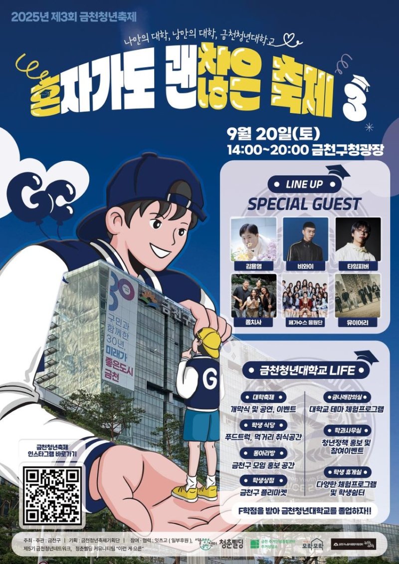 올해는 '대학교를 주제로 한 가상의 '금천청년대학교' 콘셉트로 진행된다. 특히 5개의 F(Friend·친구, Freedom·자유, Fun·재미, Future·미래, Festival·축제의 약자) 학점을 받아야 졸업하는 설정을 통해 참여 재미와 해방감을 부여할 예정이다.