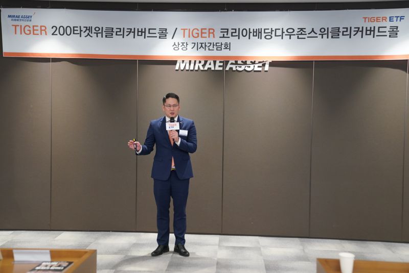 이날 기자간담회에서 미래에셋자산운용은 오는 23일 한국거래소에 신규 상장하는 타겟위클리커버드콜 ETF 2종을 공개했다. 이번에 선보이는 상품은 ‘TIGER 200타겟위클리커버드콜ETF’, ‘TIGER 코리아배당다우존스위클리커버드콜ETF’다.