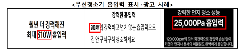 그동안 서로 다른 단위로 표시해 객관적 제품 비교가 힘들었던 무선청소기의 ‘흡입력’ 표시가 와트(W) 단위로 통일된다.