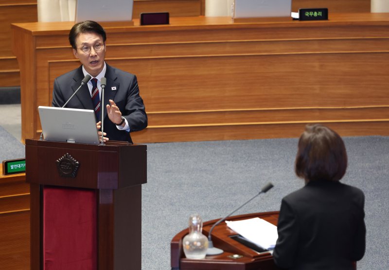 [파이낸셜뉴스] 국회 대정부질문 마지막 날인 18일 국민의힘은 더불어민주당이 주도하고 있는 내란전담재판부 설치 추진과 사법 개혁 등을 언급하며 정부와 여당에 대한 공세를 이어갔다. 반면 김민석 국무총리는 조목조목 이 같은 야당의 주장을 반박했다. 또 김 총리는 개헌으로 대통령 4년 연임제가 도입될 경우 현직인 이재명 대통령은 적용 대상이 아니라고 언급했다.