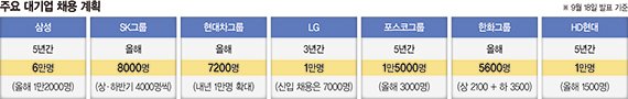 국내 주요 대기업들도 일제히 청년채용 확대 계획을 발표했다. SK그룹은 올해 총 8000명, 현대차그룹은 7200명을 채용한다.