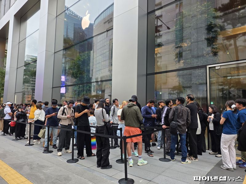 평소 애플 제품을 애용하는 김씨는 매년 휴대폰을 바꿔 쓰는 '얼리 어답터'다. 김씨는 "어젯밤 9시 30분에 도착해서 10시간 넘게 기다렸다"며 "갤럭시 S25 엣지를 쓰다가 이번에 아이폰 17 에어로 넘어간다"고 말했다.