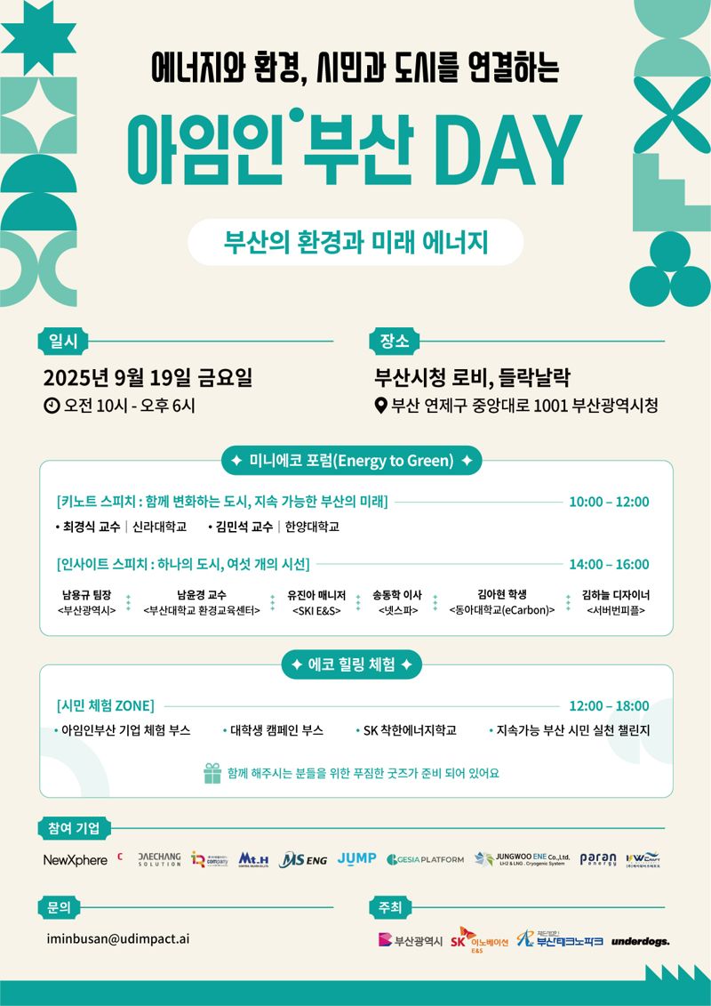 SK이노베이션 E&S 관계자는 "아임인부산DAY는 도시와 시민, 기업이 함께 지속가능한 미래를 고민하는 장"이라며 "지역과 상생하는 친환경 도시 모델을 확산하는 데 앞장설 것"이라고 전했다. moving@fnnews.com 이동혁 기자
