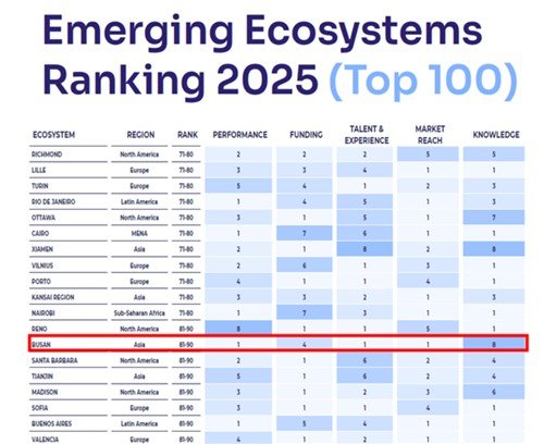 부산은 2024년 최초 아시아 20위권에 진입한 데 이어 2025년에는 신흥창업도시 세계 순위 80위권을 기록했다.