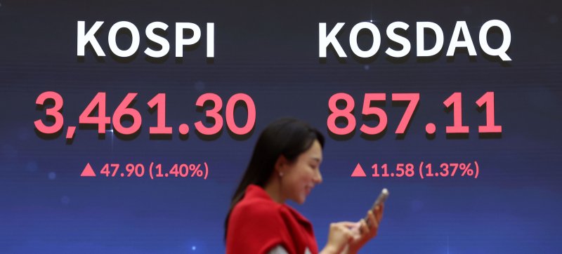 이날 오전 11시 05분 기준 코스피는 전장 대비 0.49% 하락한 3444.43에 거래되고 있다. 상승 출발한 코스피는 3467.89까지 올랐으나, 개장 직후 하락 전환해 낙폭을 키우고 있다.